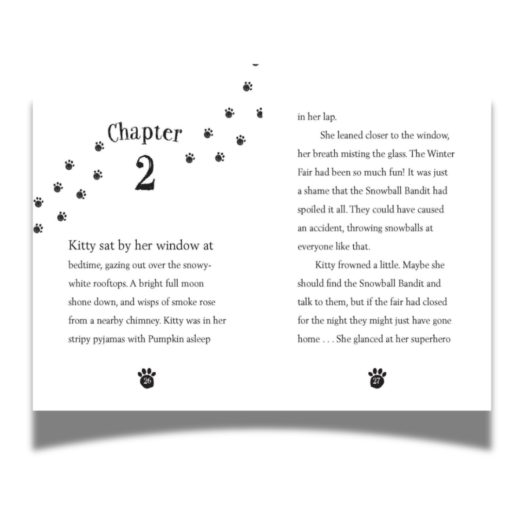 Join Kitty in a snowy adventure! In this story the young superhero is on a mission to track down the Snowball Bandit and stop them from ruining everyone's snow day fun!