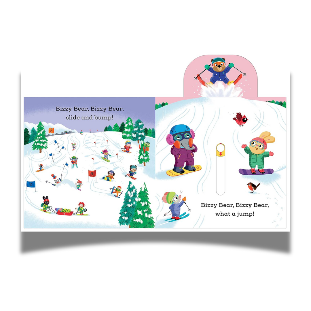 Join Bizzy Bear and friends as they take a winter trip into the mountains! Little ones will love using the chunky sliders to help Bizzy go up in the ski lift, then zoom down the mountain again – and end the day with a spin around the ice-skating rink! Another exciting title in this best-selling series which encourages preschoolers to get involved in the storytelling.