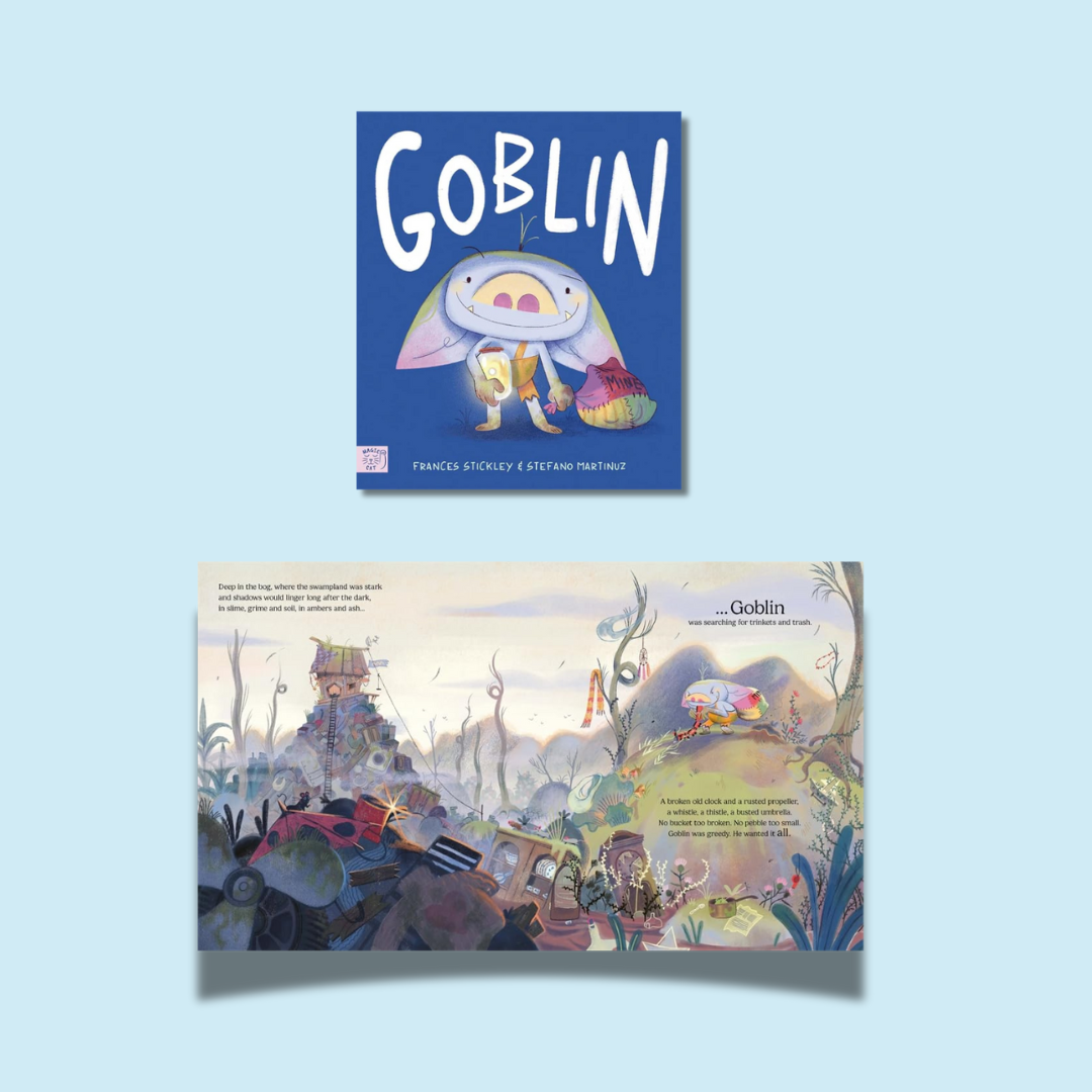 Goblin has everything. Trinkets and treasures, nick-nacks and stuff – he has it all . . . and yet, it’s never enough. So, when a band of unlikely companions turn up and Goblin actually FEELS something, things start to shift. Could it be that friendship, not possessions, is what Goblin really needs?