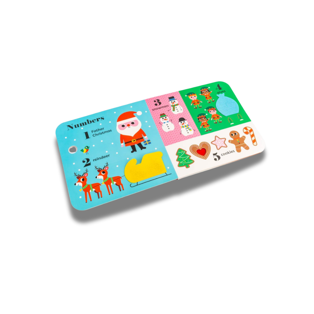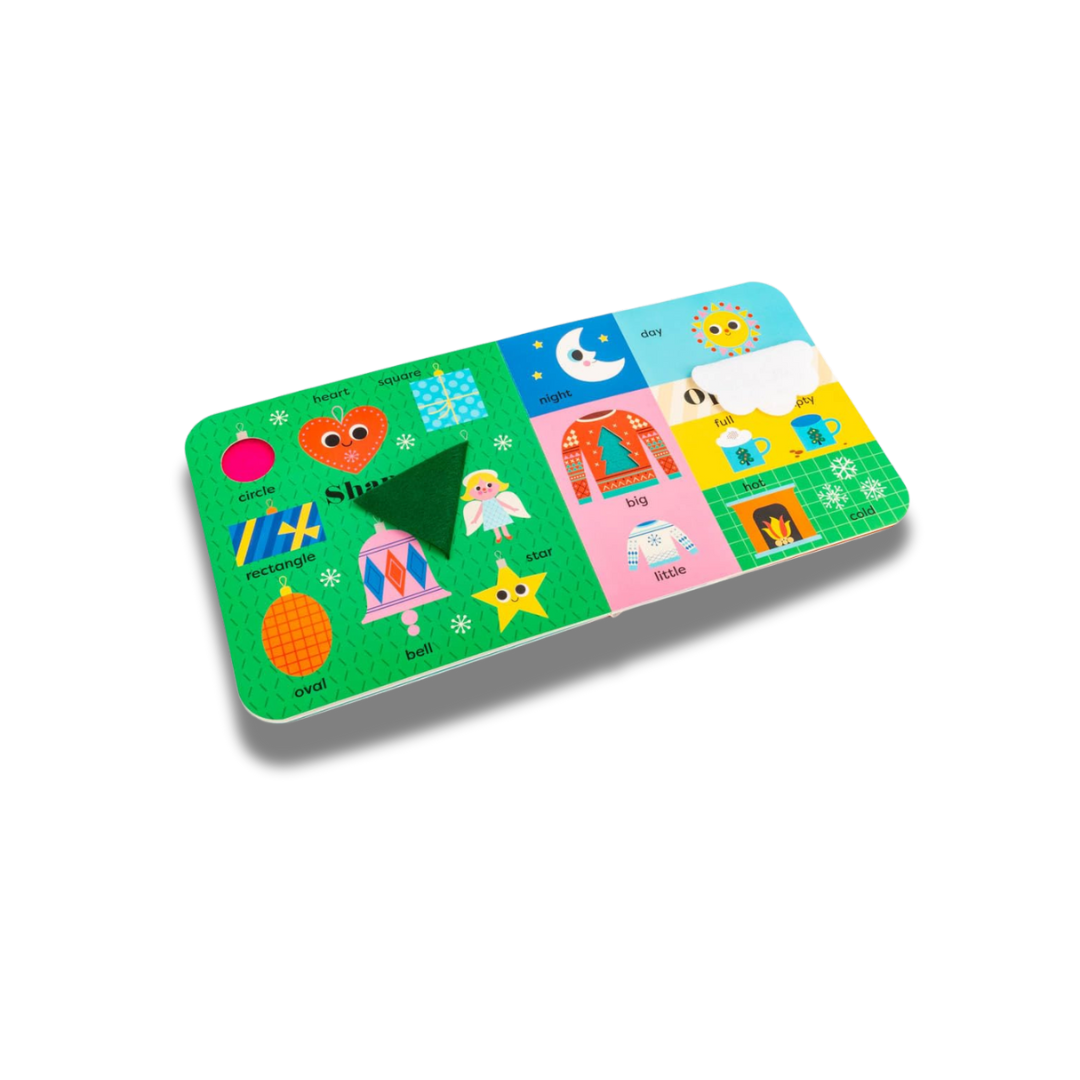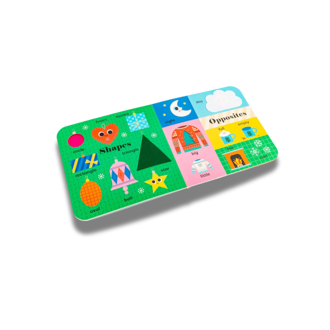 A BIG Christmas book for sharing with a little person, introducing festive first words, Christmassy colours, snowy shapes and more early-learning concepts – with additional felt flaps and a mirror!