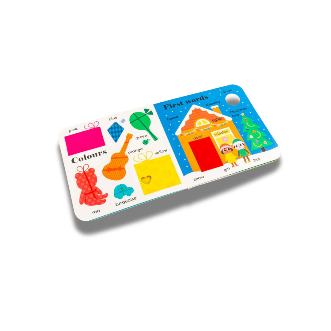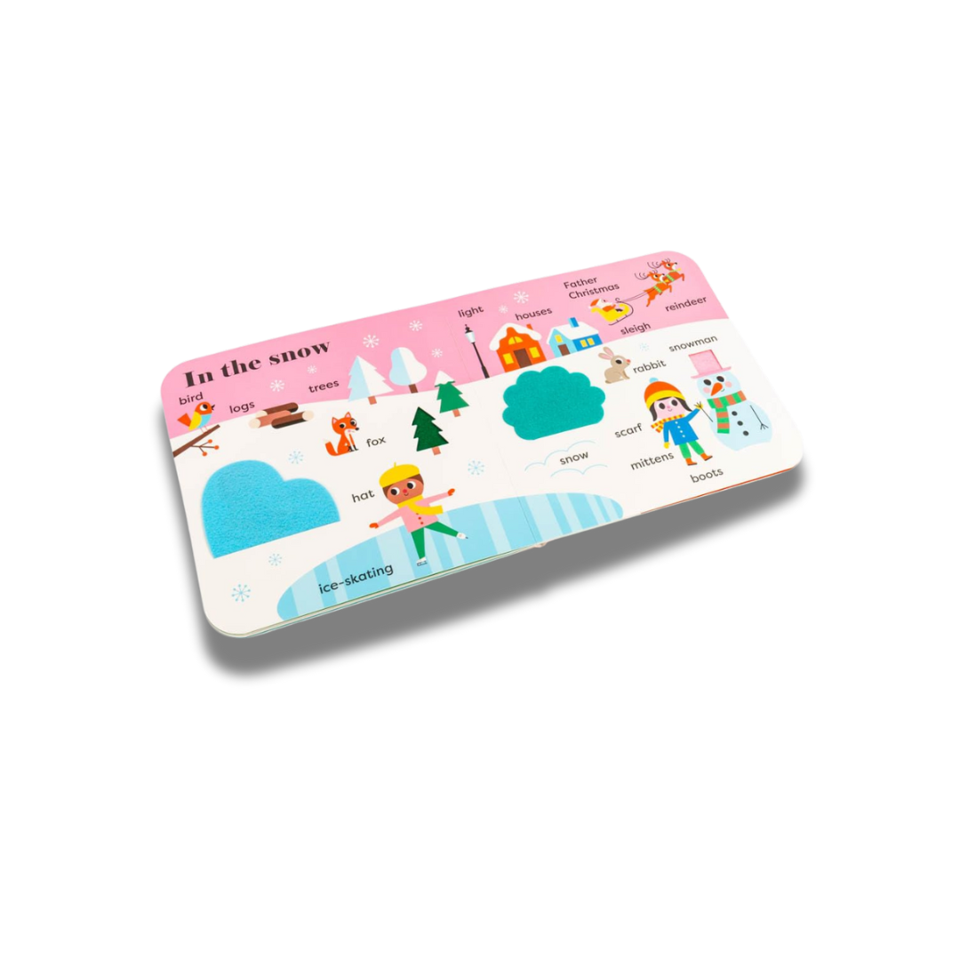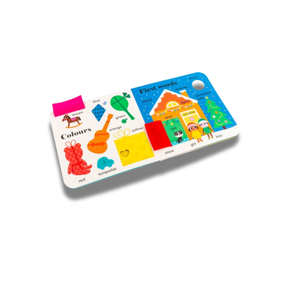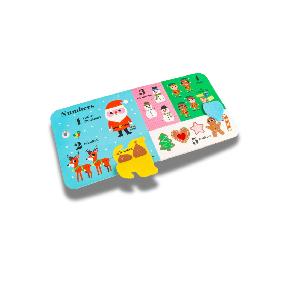 A BIG Christmas book for sharing with a little person, introducing festive first words, Christmassy colours, snowy shapes and more early-learning concepts – with additional felt flaps and a mirror!