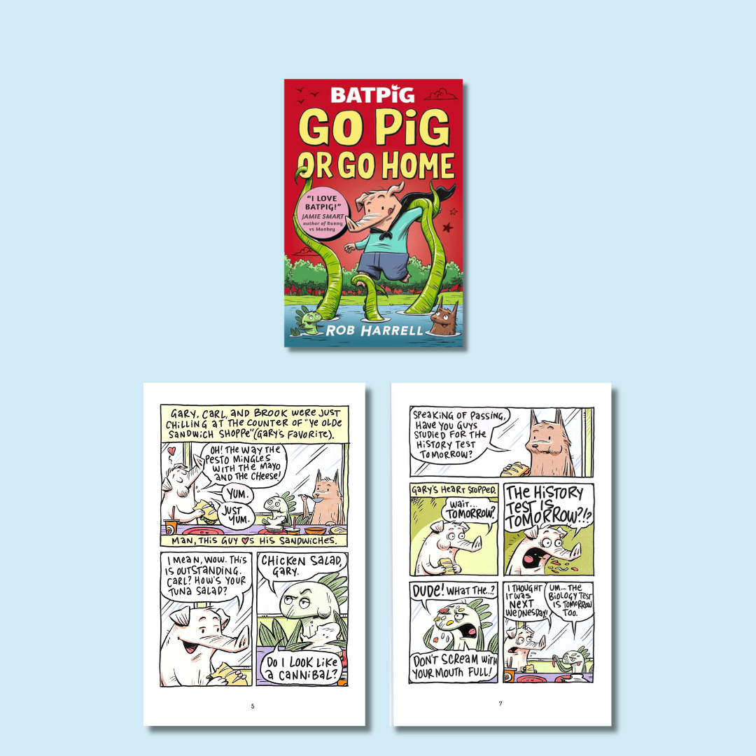 Gary Yorkshire and his friends, Carl and Brooklyn, are up against what might be their scariest missions yet: Magical, presidential sharks and summer camp! First there's the sudden appearance of Sharkraham Lincoln (Half shark! Half 16th President!), who sets off a major test cheating scandal. And then at Camp Moldy Snout (not a great start!), Gary's hoping for a laid back, chill summer with his friends, but shifting friendship dynamics make that harder than expected . . . and so does the grumpy lake monster. Will Batpig ever catch a break to just relax and enjoy a tasty sandwich?